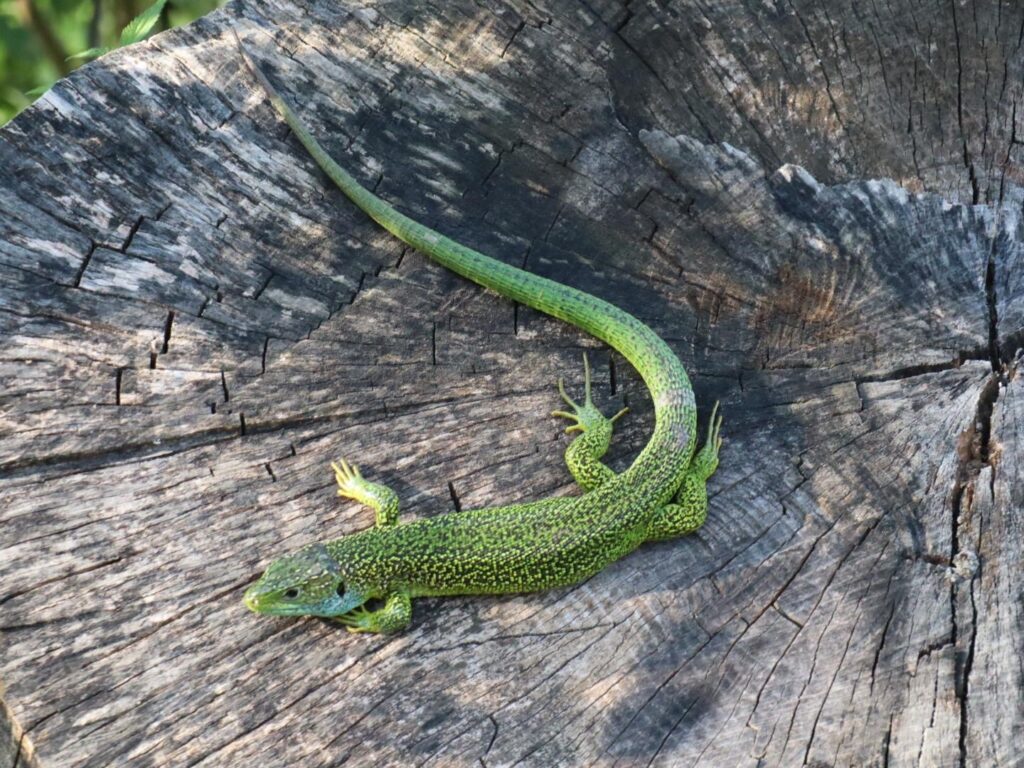 Auch die Smaragdeidechse geniesst die letzten Sonnenstrahlen