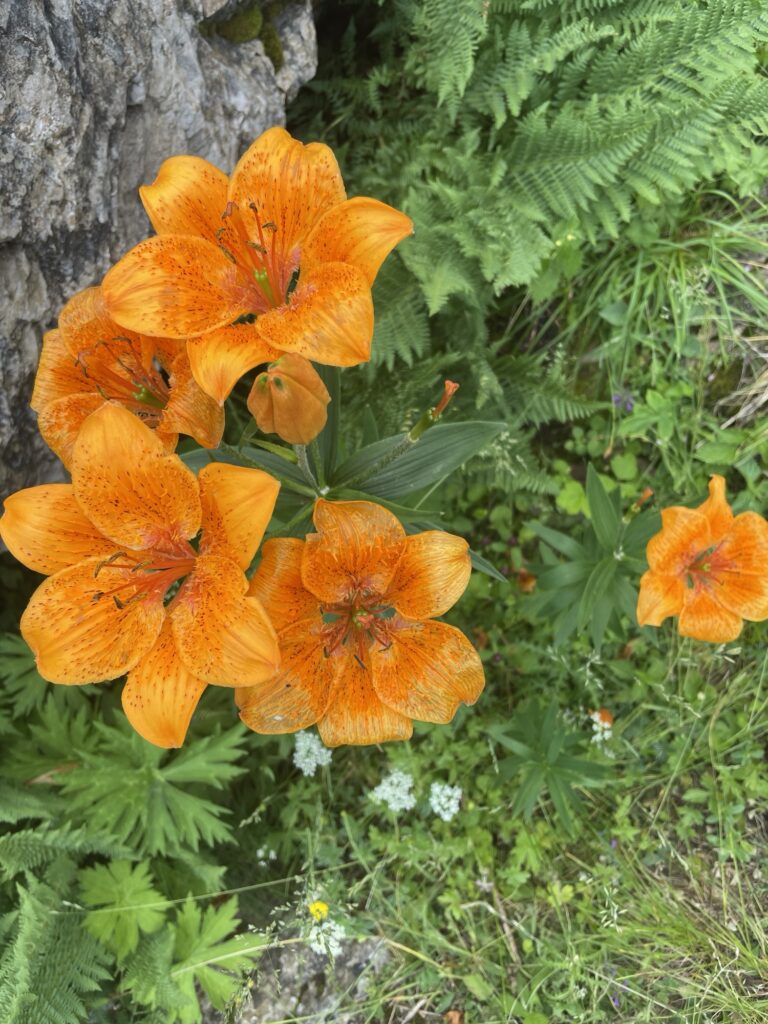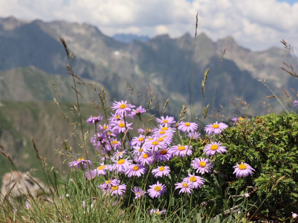 Schön, wieder im Juli unterwegs zu sein, die Pflanzen leuchten bunt und versuchen bewundernde Blicke von den Vorbeiwandernden zu erhaschen. Die Natur ist schon weit, die meisten Alpenrosen sind bereits verblüht.