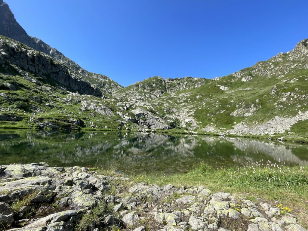 Es ist auch heute feucht-warm, das erfrischende Bad im Lago Frissone Inferiore bietet eine gute Möglichkeit zum Abkühlen.