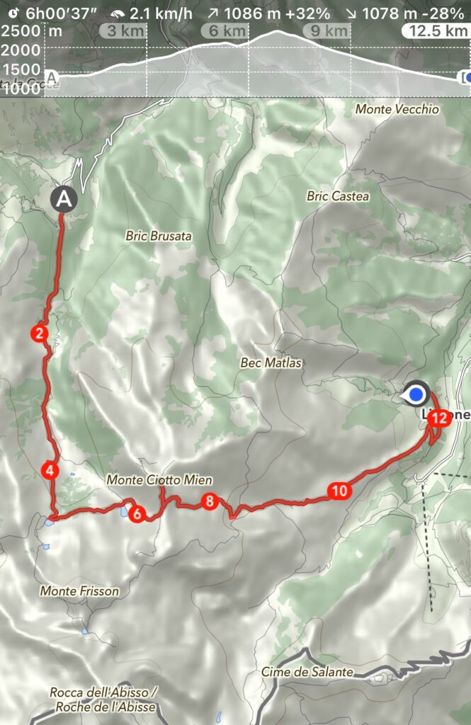 Der Abstieg nach Limonetto zieht sich auch nochmals über die Stein-Rolltreppe, und wird im Verlauf abgelöst von knietiefen Plackenfeldern. Auch nicht viel besser.