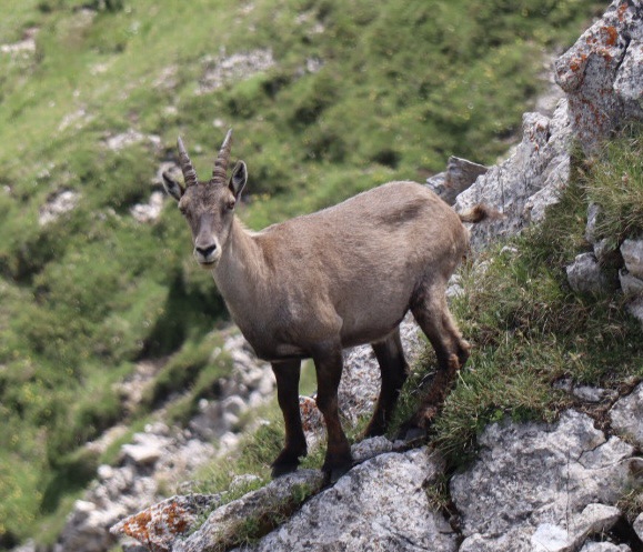 Viele Höhenmeter fehlen nicht mehr, aber die haben es so richtig in sich. Die Steinböcke springen amüsiert vorüber, als sie uns beim Hochkämpfen beobachten. Der steinige Untergrund macht aus drei Schritten zwei. Aber die Ausblicke sind grandios, jeder Übergang hält eine neue Perspektive bereit.