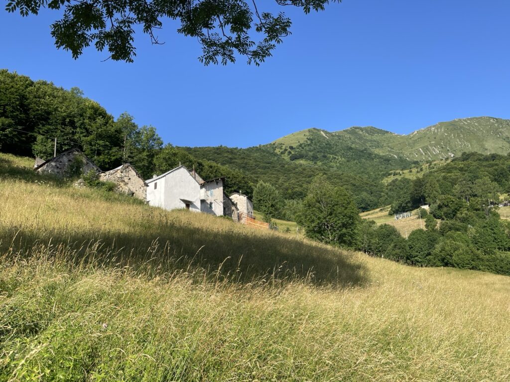 An klaren Tagen ist auf dieser Etappe das Monte Rosa Gebirge, das Matterhorn und auch das Mittelmeer sichtbar. Heute leider nicht, dafür hören wir das Donnergrollen ganz nah.