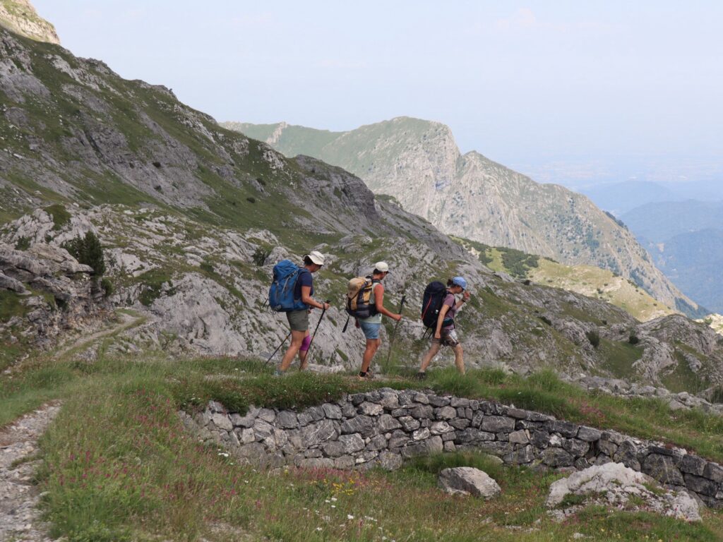 Plötzlich ändert sich die Vegetation abrupt und karstige Böden nehmen Überhand. Die Wegführung bleibt jedoch extrem angenehm und sanft. Wir haben uns auf einen Militärstrassen-Abschnitt eingestellt und werden total positiv überrascht: die heutige Etappe entpuppt sich während der Blumenzeit zu einem absoluten High-Light.
