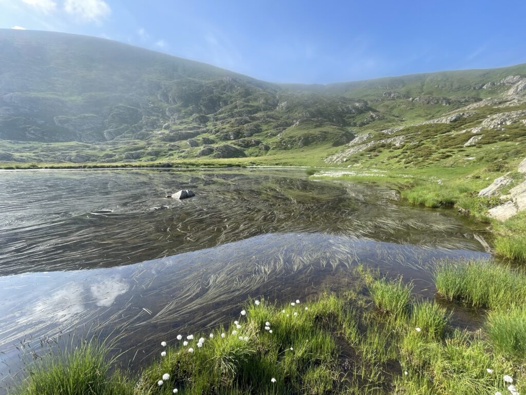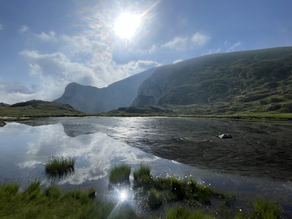 Bald queren wir ein wunderschönes Moorgebiet mit einem Bergsee, Alpenkrähen kündigen den Gemsen unseren Besuch an, welche dann unkontrolliert davon springen. Wachteln gurgeln uns aus dem hohen Gras zu und verteidigen erfolgreich ihr Gelege. Die italienische Wander- und Schwatzgruppe haben wir schon länger hinter uns gelassen, die Geräuschkulisse beschränkt sich nun darauf, was die Natur zu bieten hat. Raum für Gedanken als Nährboden für Neues. Was gibt es Schöneres!