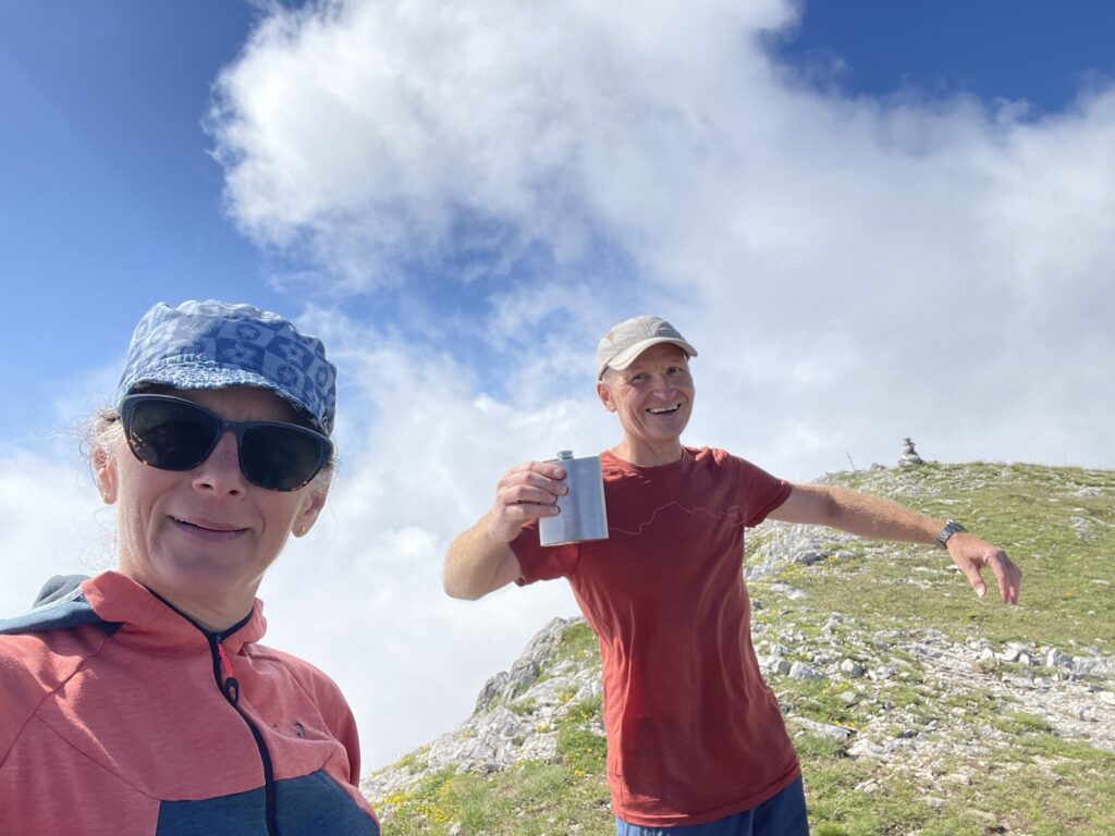 Auf dem 2. Gipfel und gleichzeitig dem Tageshöchstpunkt tanzt dann der Bär mit seinem Enzian, auf der Cima delle Saline mit 2612 MüM ist auch dieser Trank erträglich.