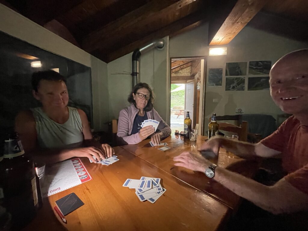 Um 4 Uhr miaut die Hüttenkatze, um 6.30 Uhr geht Thomas’ Joch-Wecker mit Hells Bells los und Frühstück gibts erst um 7.30! Aber auch mehrfach aufgeweckte starten die heutige Tour mit einer grossen Portion Optimismus.