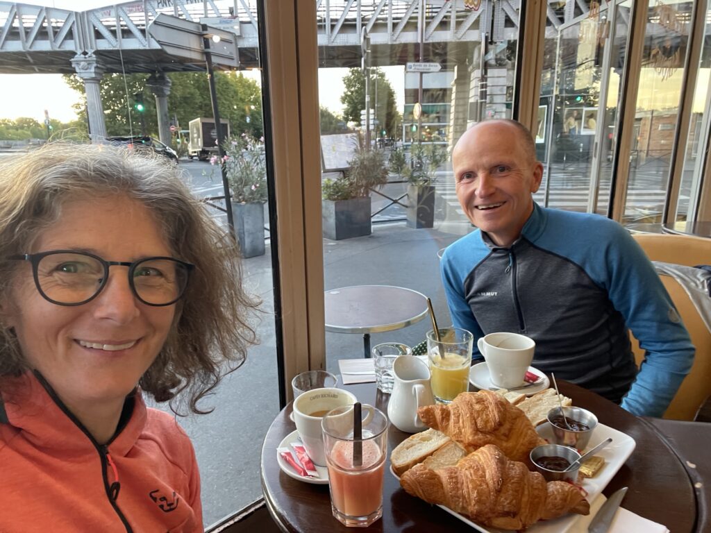 Wir fühlen uns noch etwas zerdrückt beim Petit Déjeuner in Paris