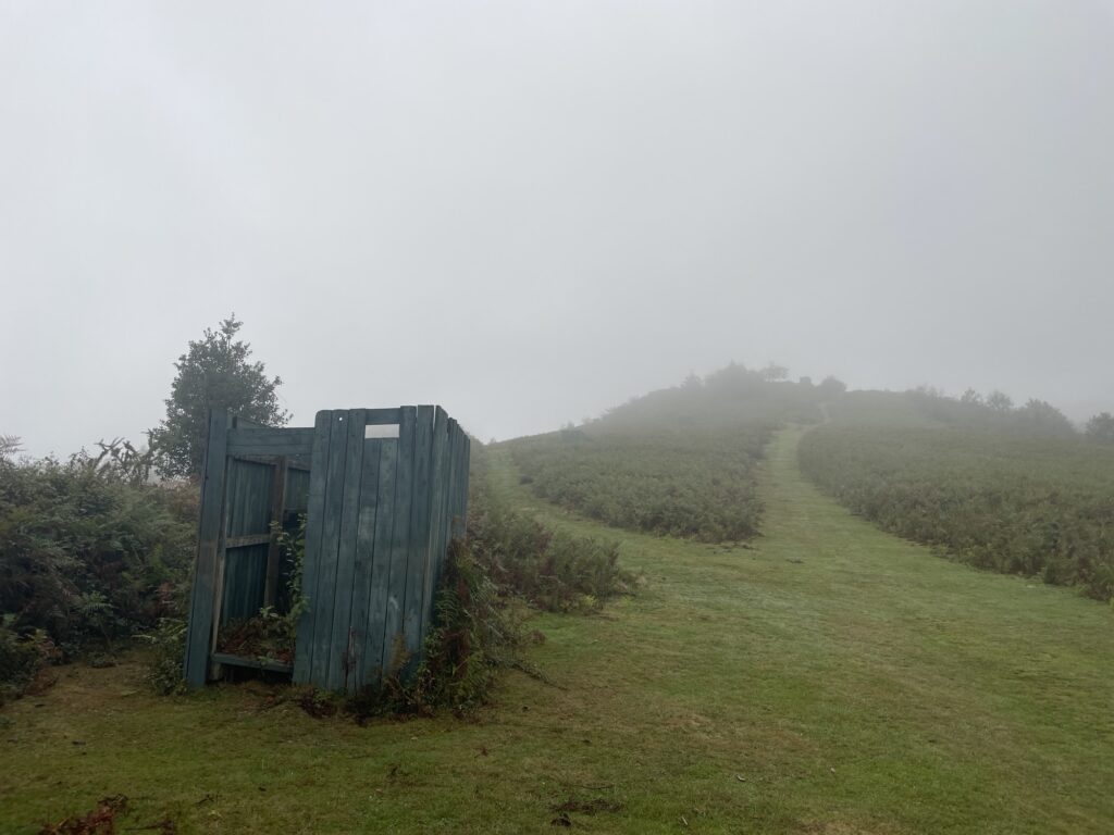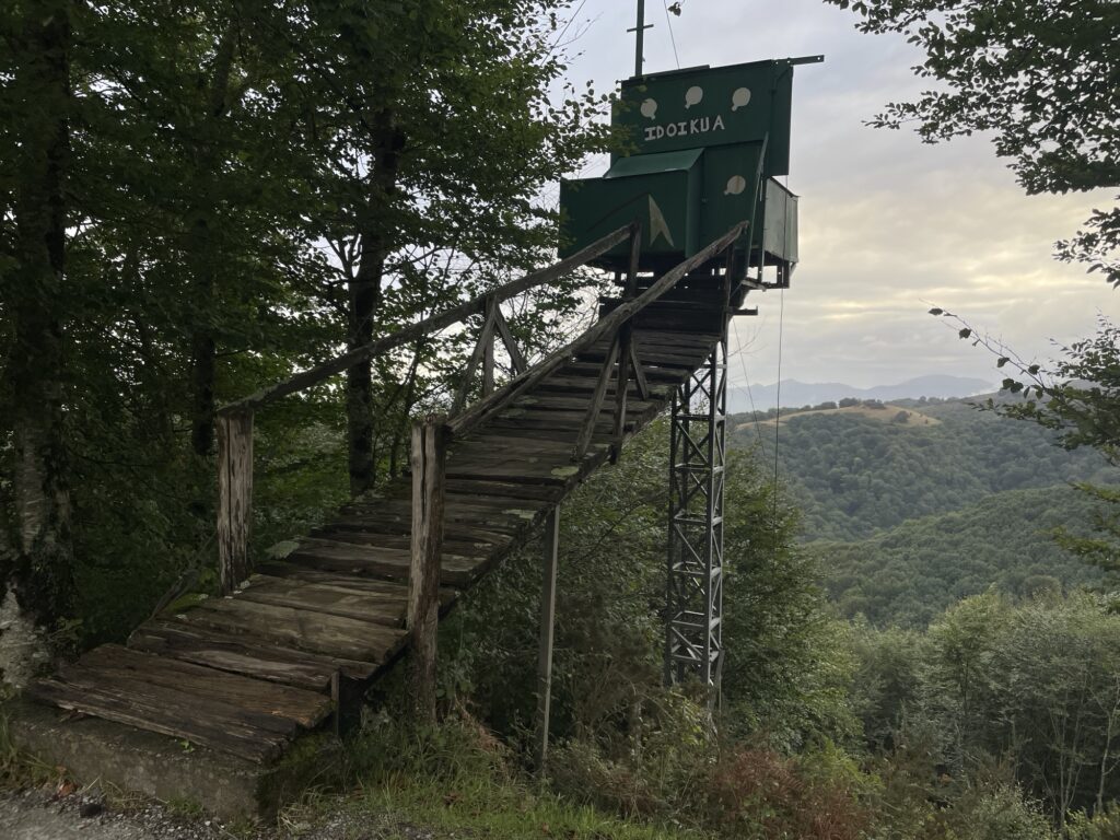 Feucht und neblig – richtig baskisch. Die Jagdhäuschen stehen schön aufgereiht und dienen der Ringeltaubenjagd