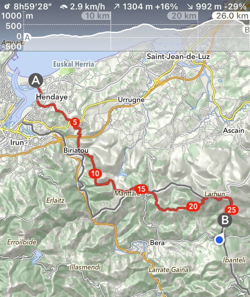 Auf dem Col d‘Ibardin werden wir erstmals komplett aus unserer Wanderidylle gerissen: Shops, Bars und unzählige Autos säumen den Strassenrand. Ob das hier ein Zollfreiparadies ist? Unsere Rucksäcke sind sowieso schon schwer und Sonntagskommerz ist überhaupt nicht unsere Lieblingsbeschäftigung. Also schnell weiter…