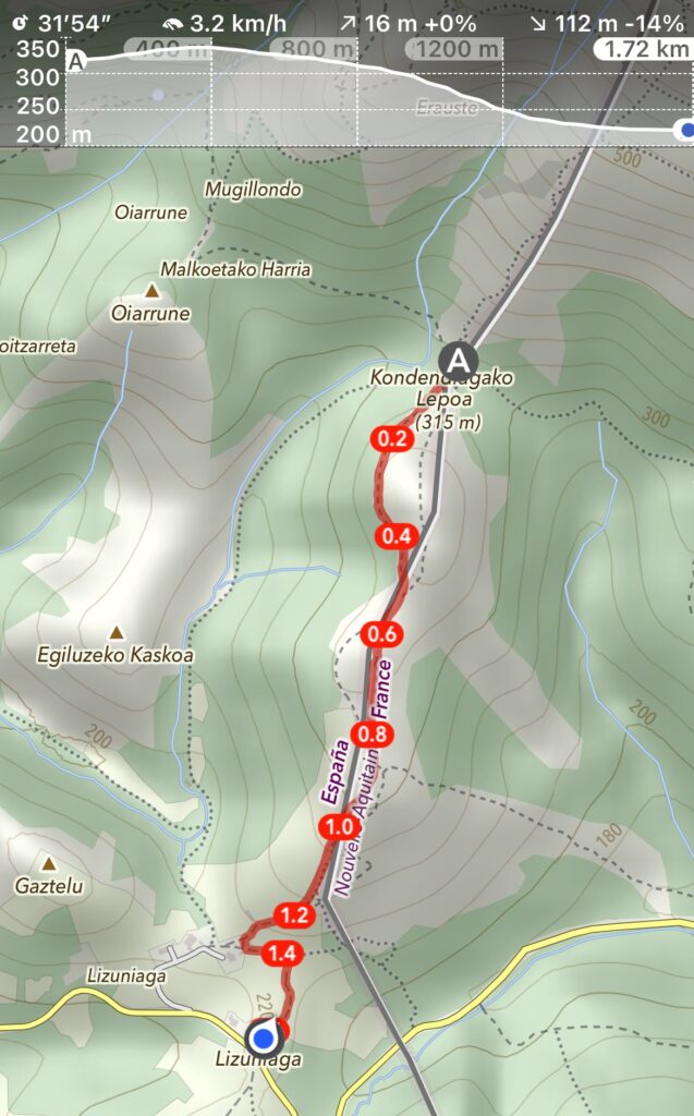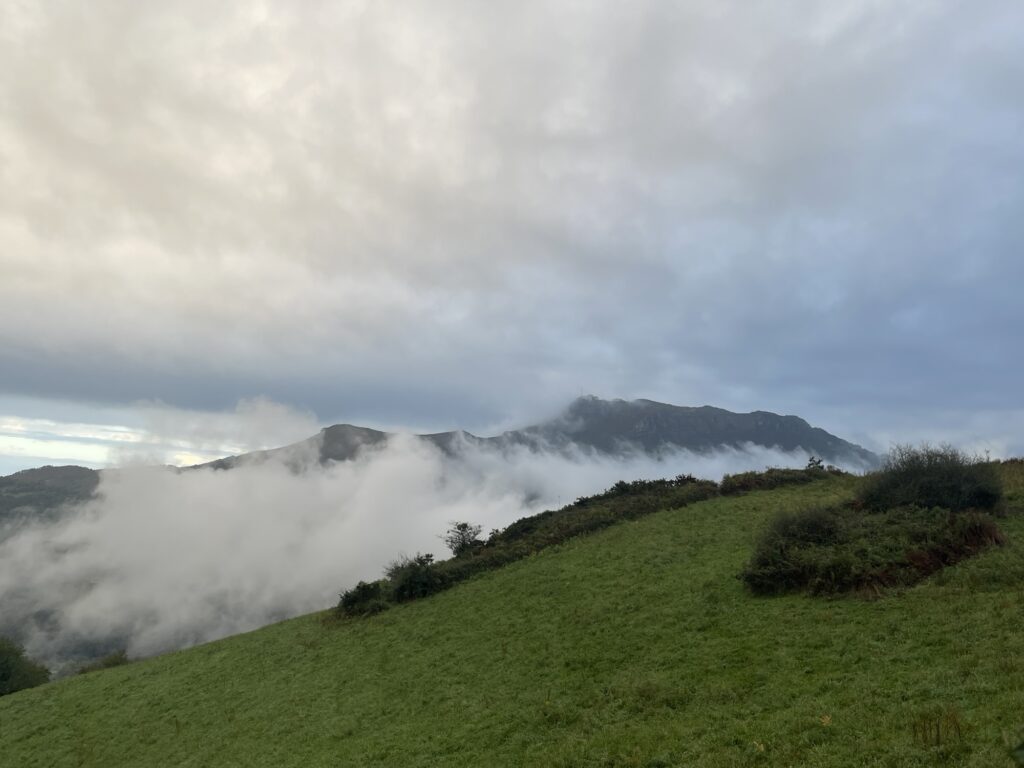Ab Mitternacht werden wir tatsächlich mit dem versprochenen Regen berieselt und die Prognosen sind baskisch-feucht für den heutigen Montag. So packen wir in einem Schonmoment unsere sieben Sachen und beziehen am Col Lizuniaga nach nur einer halben Stunde Gehzeit eine Unterkunft. Mission des Tages: warten bis alles wieder trocken ist!