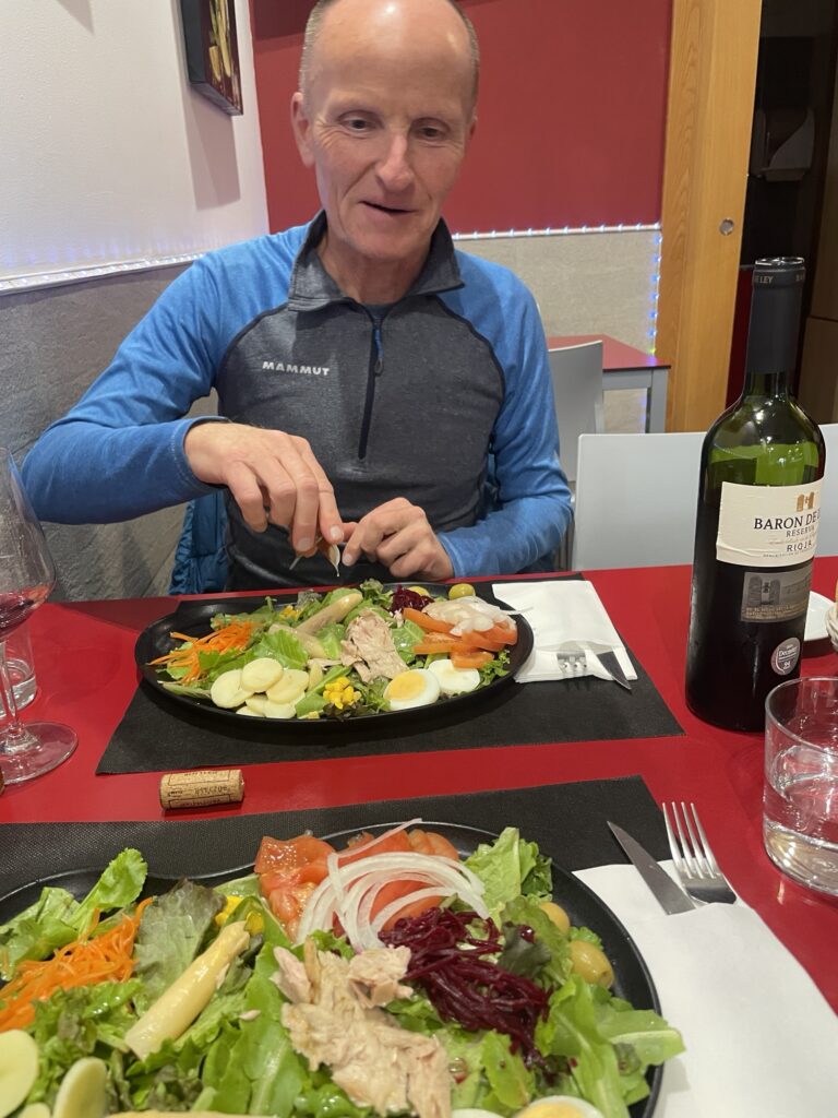 Nach einem kurzen Abstieg stellen wir dann am Col Gonmendia bei einer unbewarteten Hütte unser Zelt auf. Der Koch hat heute frei, wir haben unsere Bäuche auf dem Larhun bereits gefüllt.
